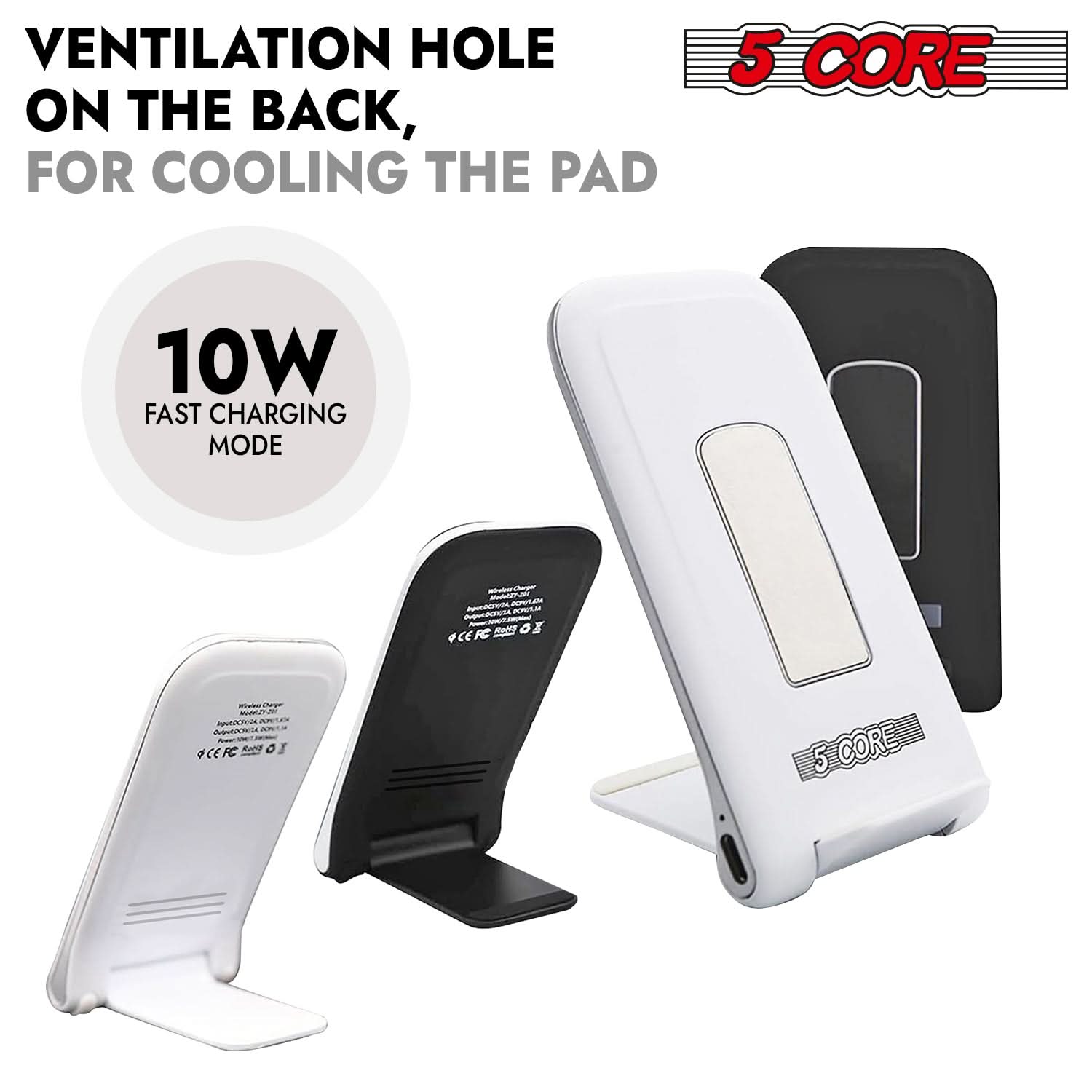 Experience seamless charging with our wireless charger. Designed for efficiency, it offers versatile input options and delivers reliable wireless output up to 10W. With a charging distance of up to 6 mm, this wireless charging station ensures convenience and ease of use. Operating efficiently between -10 and 60 degrees Celsius, this charging dock is built to perform under various conditions. Achieve up to 73% charging efficiency and keep your devices powered up effortlessly. Elevate your charging experience using 5 Core Wireless Charging Stand. |